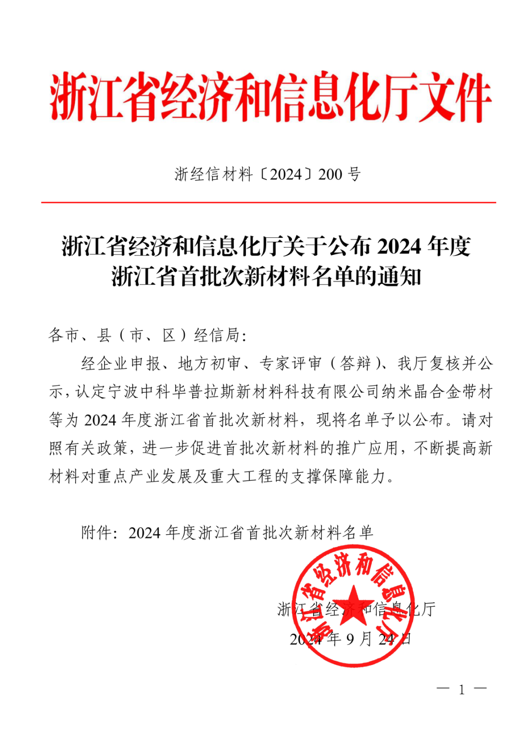 近日(ri),浙江(jiang)省經(jing)濟咊(he)信(xin)息化廳公(gōng)布了(le)《2024年(nian)度浙江(jiang)省首批(pi)次新(xin)材(cai)料認定結果》名(míng)單(dan)
